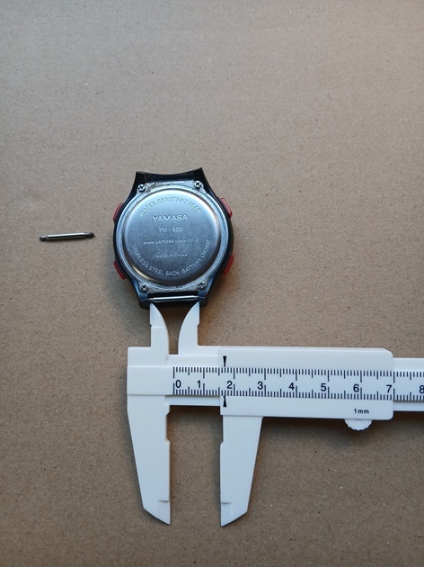 時計のラグ(バンドを取り付けるための接合部分)にはおもに貫通型と日貫通型の2種類あるようで、山佐TM-500は日貫通型です。後述する別記事のエプソンQ-10Gは貫通型です。
