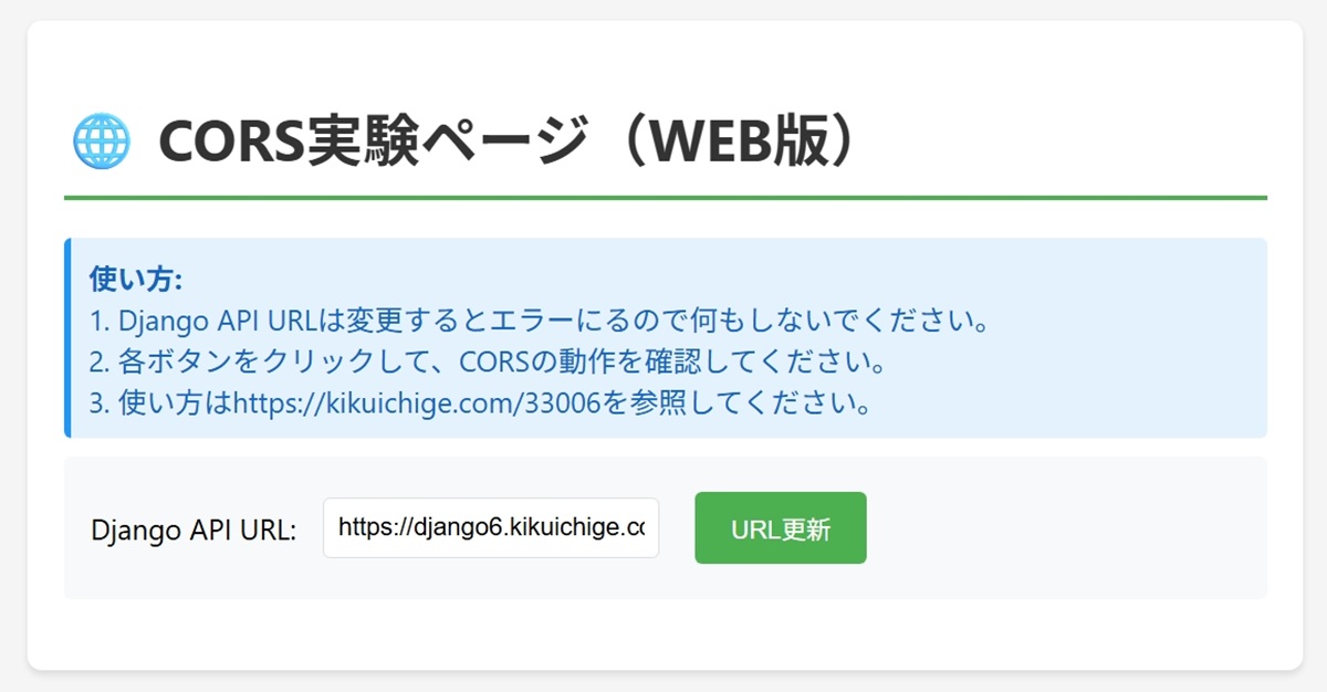 バックエンド:https://django6.kikuichige.com/cors_project(オリジンdjango6.kikuichige.com)